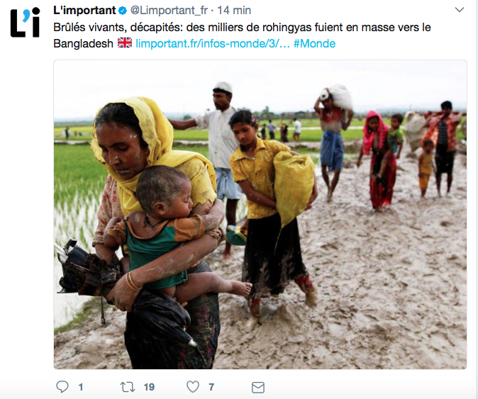 18/09/2017 - Arrêt sur image : Aung San Suu Kyi ignorant toujours le massacre des Rohingyas 18/09/2017 - En 2027, on ne pourra plus se nourrir 11/09/2017 - « Path out », un jeu vidéo pour raconter la vie de réfugié alencredemaplume.com
