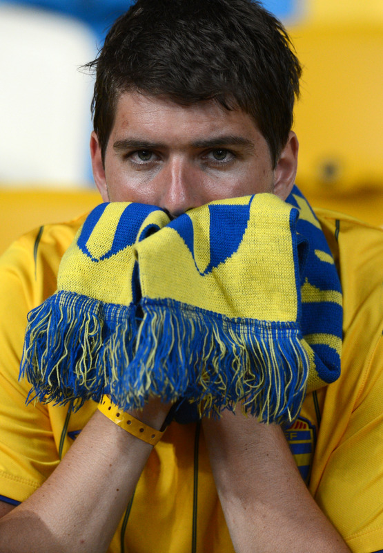 A Swedish supporter reacts at the end of the Euro 2012 championships football match Sweden vs England on June 15, 2012 at the Olympic Stadium in Kiev. England won 3-2. AFP PHOTO / CARL DE SOUZACARL DE SOUZA/AFP/GettyImages